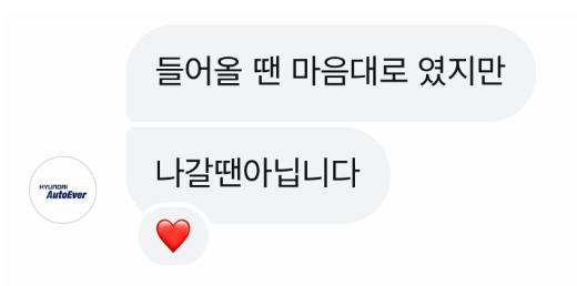 24년 하반기부터 현대오토에버에서 일을 할 예정이다. 그동안 취준을 하면서 연락을 하지 못했던 분들도 많았는데 이제야 좀 다시 연락을 할 수 있겠다 싶었다. 그동안 옆에서 응원해준 친구들 가족, 여자친구 그리고 멀리서 응원해준 모든 지인분들께 너무 감사한다. 또 긴 시간동안 잘 이겨낸 나 스스로에게 "축하한다"라고 전하고 싶다.